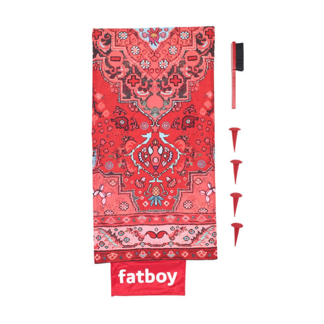 Picnic Lounge is a Persian classic with a contemporary Fatboy twist. Roll it up like a carrier bag and cycle to the park, the woods or even a pebbly beach; its foam filling guarantees comfort. Thanks to its oversized pins, this water-resistant rug will stay put. The picnic blanket comes with a pouch to safely store your phone and keys and a brush to sweep away any sand.